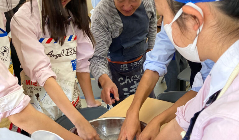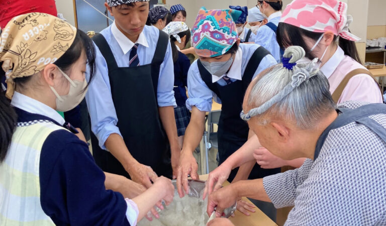 初めて触るこんにゃくに最初は戸惑いつつも途中からは慣れた手つきで練っていました。さすが高校生、スムーズに作業が進みました。出来上がったこんにゃくは旅行のお土産話と一緒にご家族と味わっていただけたら嬉し...