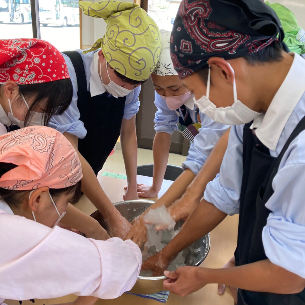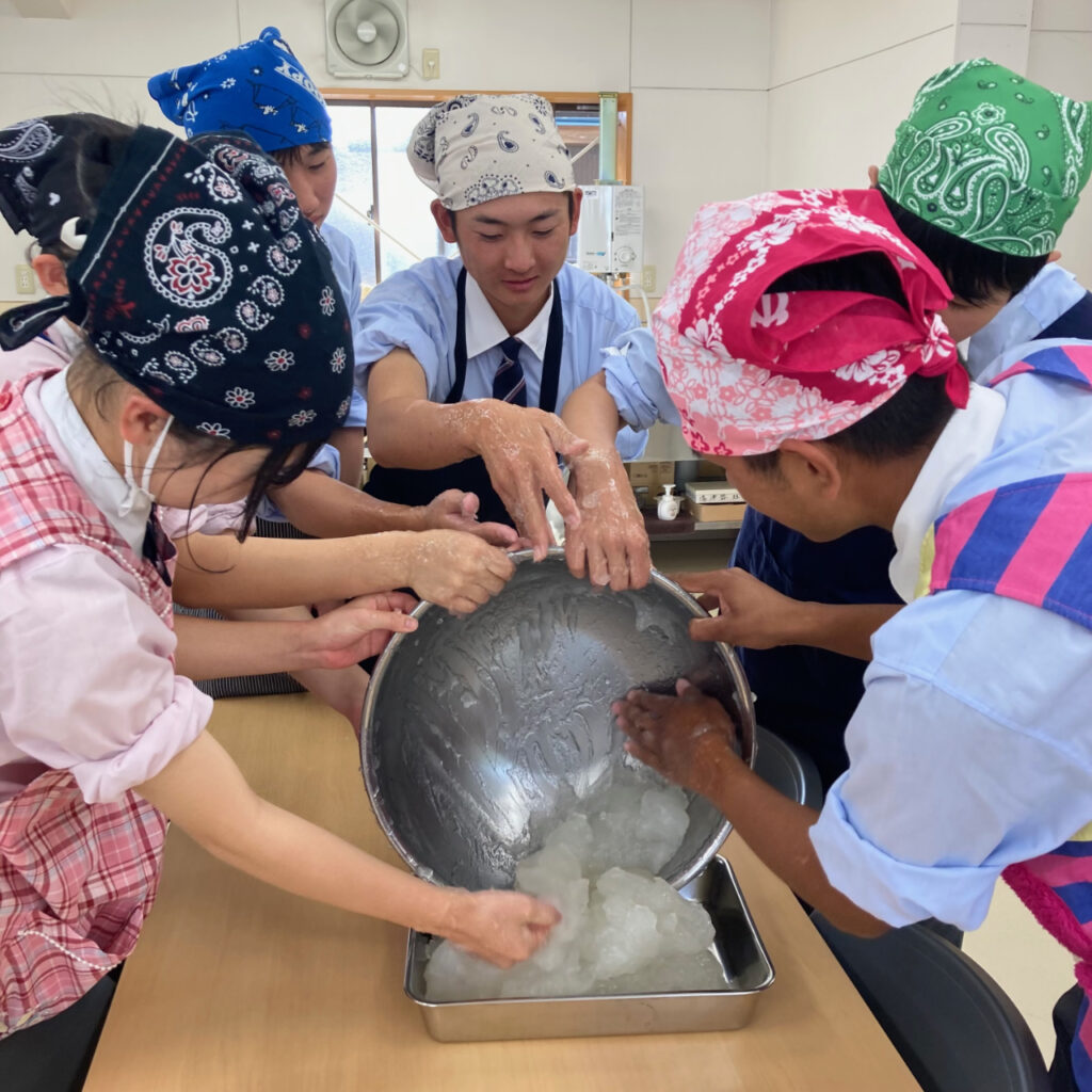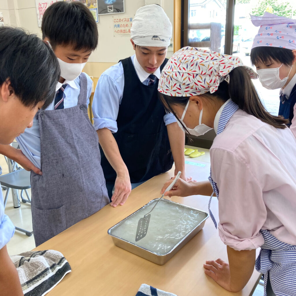 初めて触るこんにゃくに最初は戸惑いつつも途中からは慣れた手つきで練っていました。さすが高校生、スムーズに作業が進みました。出来上がったこんにゃくは旅行のお土産話と一緒にご家族と味わっていただけたら嬉しいです!