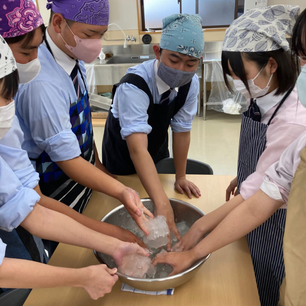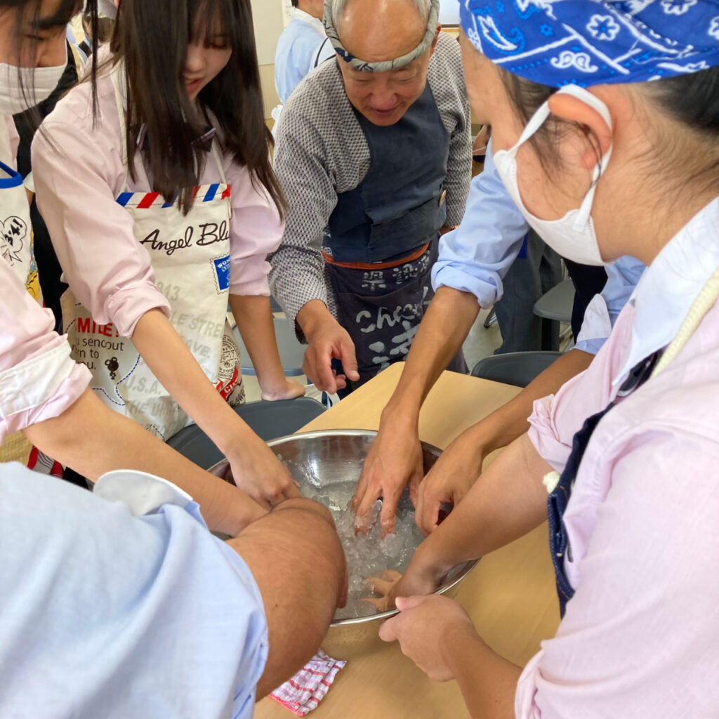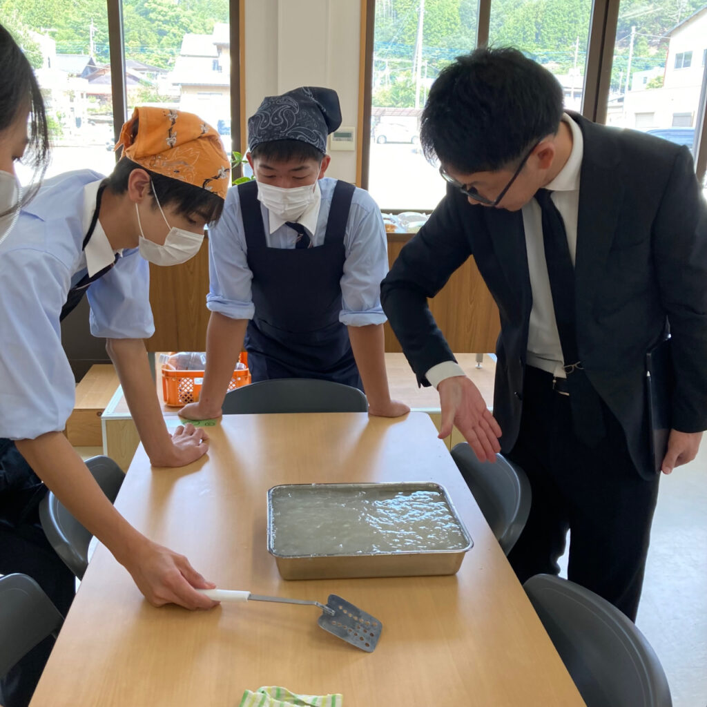 初めて触るこんにゃくに最初は戸惑いつつも途中からは慣れた手つきで練っていました。さすが高校生、スムーズに作業が進みました。出来上がったこんにゃくは旅行のお土産話と一緒にご家族と味わっていただけたら嬉しいです!