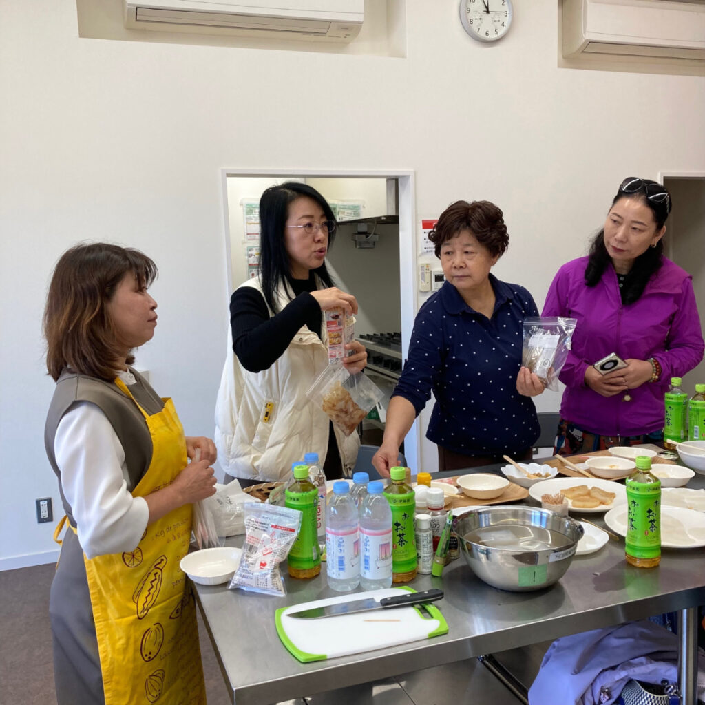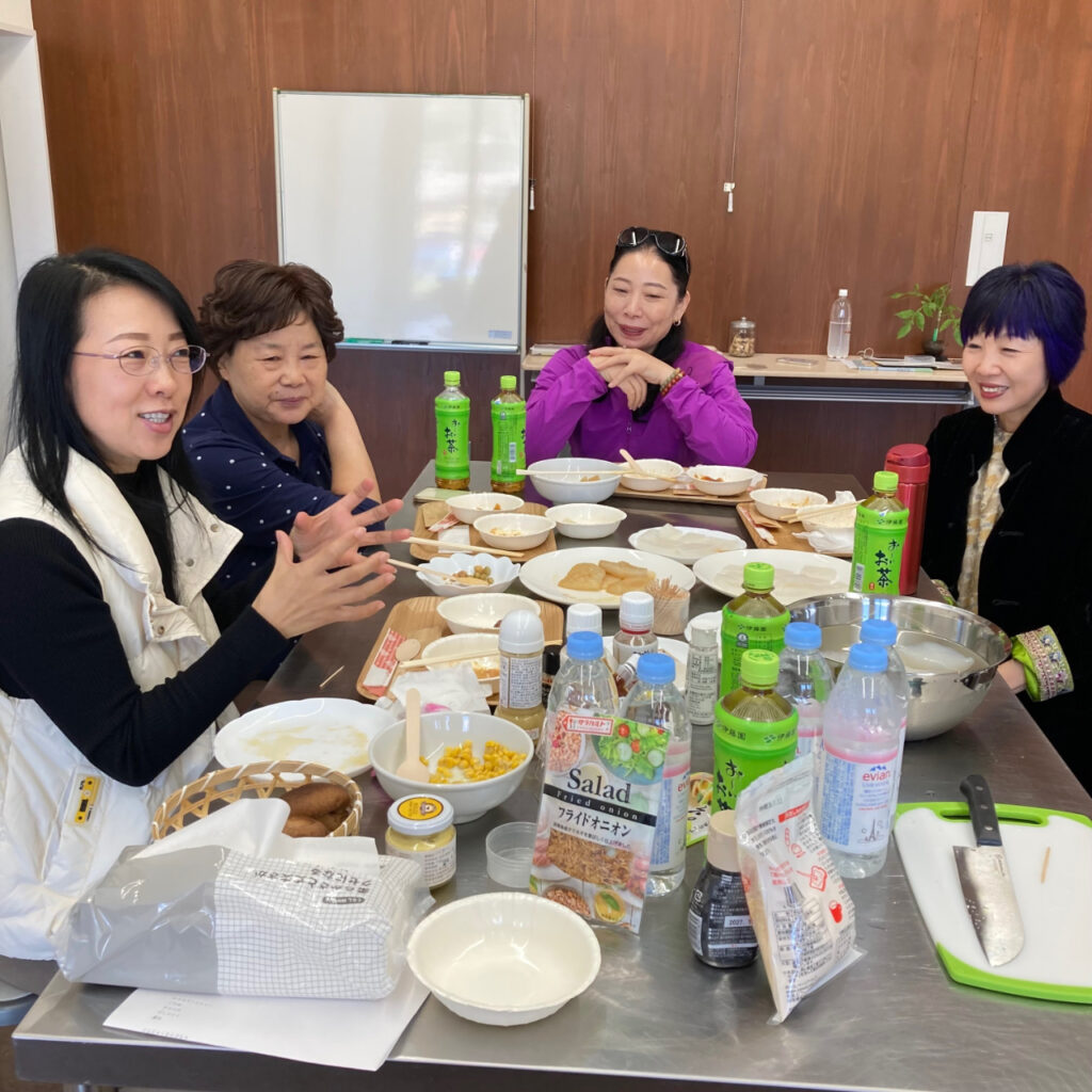 出来上がったヘルシー食品こんにゃくの試食タイムでは、こんにゃくレシピを提案。