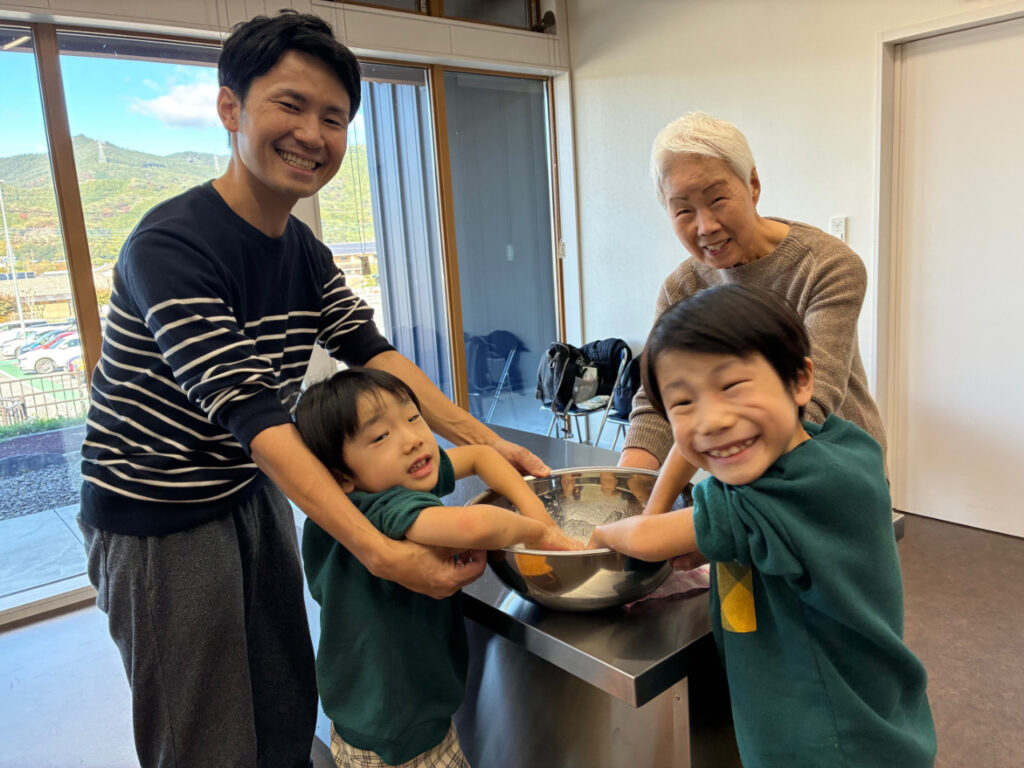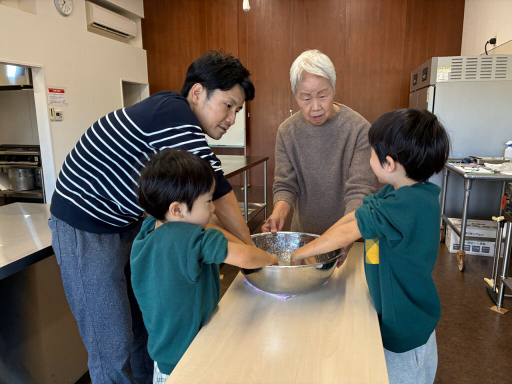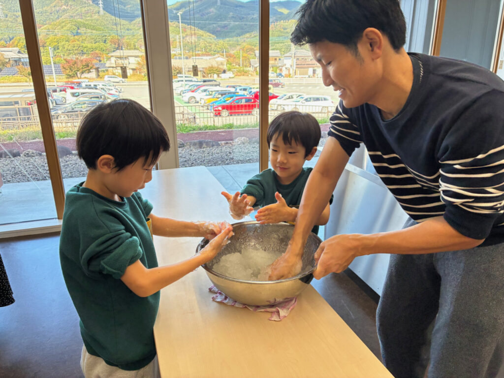 こんにゃくの作り方を知りたい!と、手作り体験に初挑戦です。 お母様を中心に時間を掛けて練ったので、美味しそうに仕上がりました。