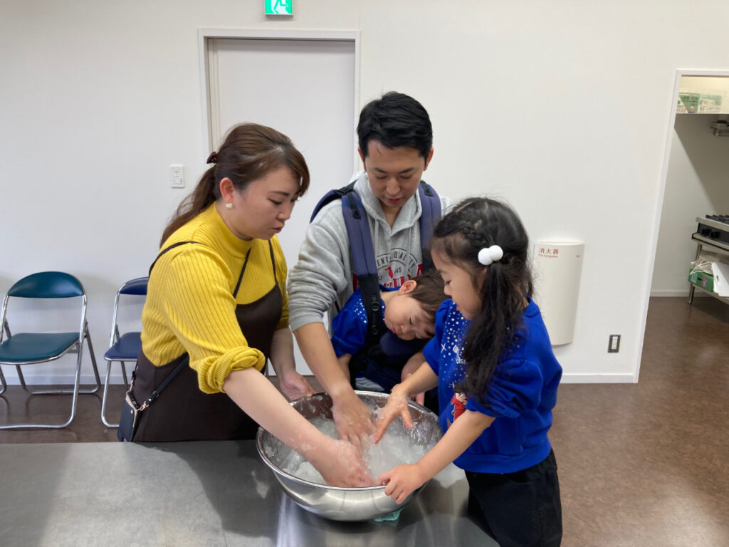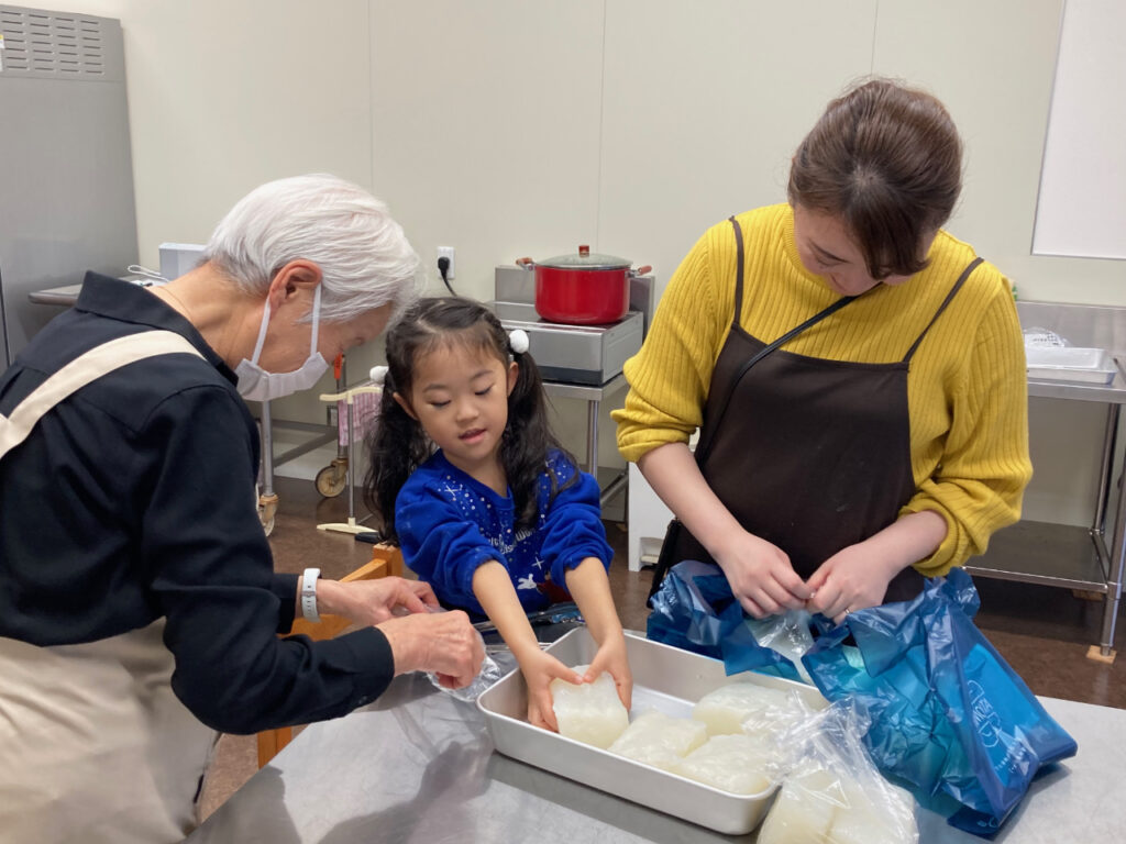 家族みんなで頑張っている姿がとても微笑ましく、スタッフも癒された体験教室でした。 まごころ込めて作ったこんにゃくは、おばあちゃまへのプレゼント。 弟さんが大きくなったら、またぜひ遊びにきてください!スタッフ一同お待ちしております。