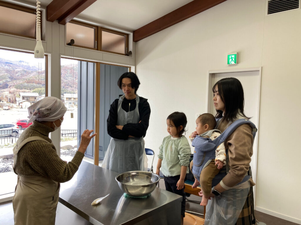 雪が残る中、都内から下仁田町にお越しいただきました! こんにゃくが好きという娘さん。「美味しくなあれ」と元気いっぱい練り作業を頑張っていました。 普段から料理をされというパパは慣れた手つきでお手伝い。 ご家族の優しさあふれる和やかな雰囲気の体験となりました。