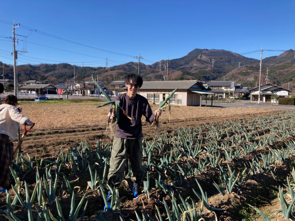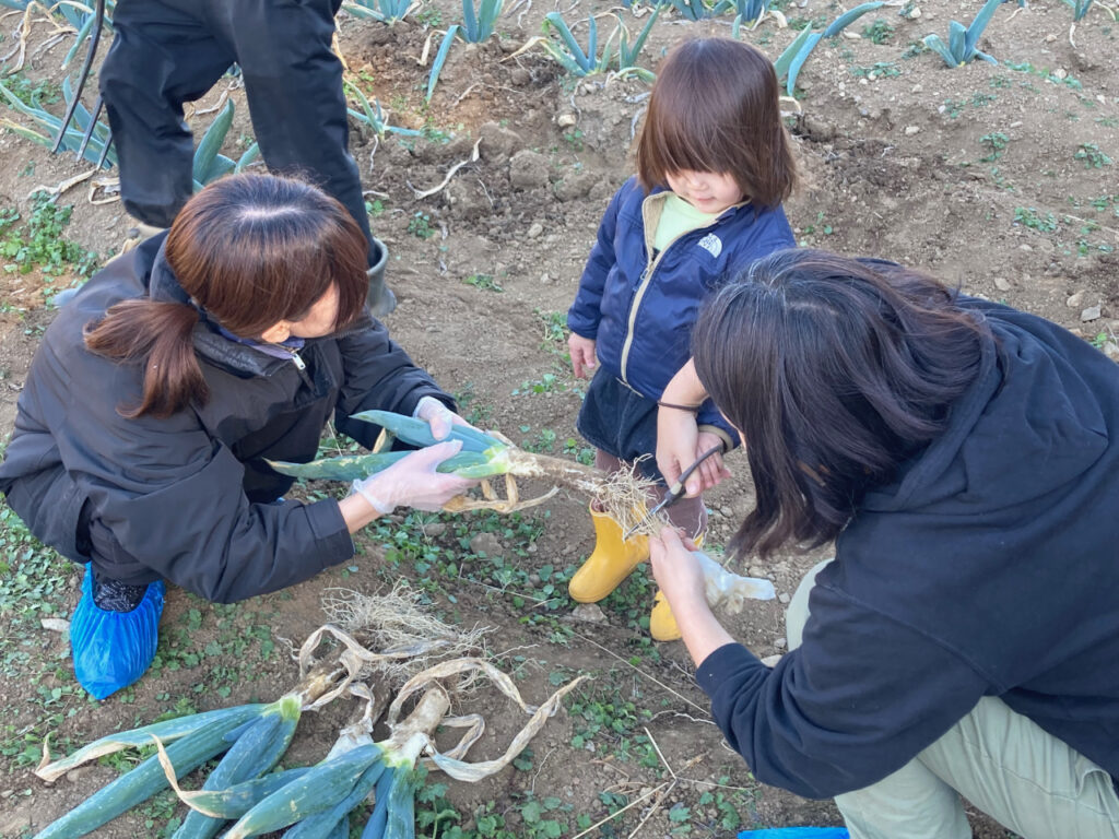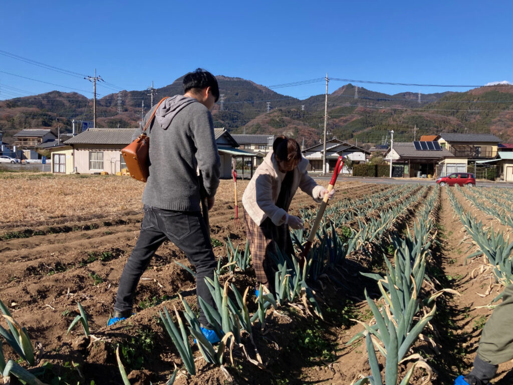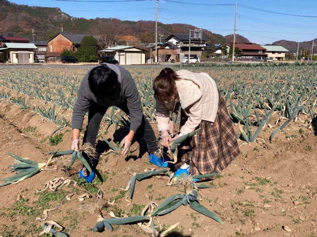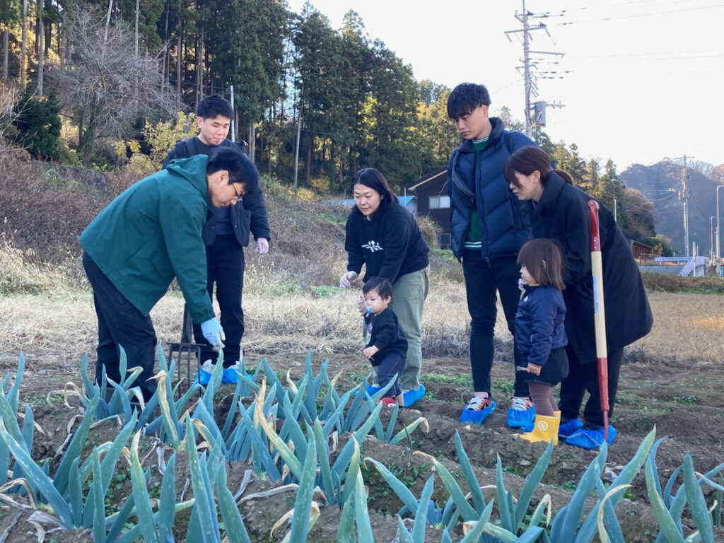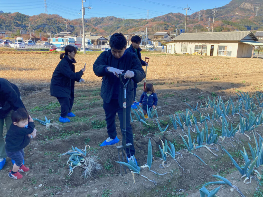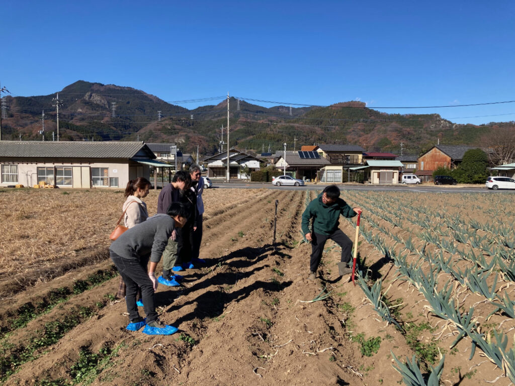 小春日和の中、4組6名の方が参加してくれました。収穫作業は初めてという方もいましたが、お気に入りのねぎを選んでいざ収穫!ねぎを引き上げた瞬間はみなさんとっても良い笑顔でした。 収穫したねぎはすき焼きにして食べるとのお声が多数!美味しく味わっていただければ嬉しいです。最後はねぎ畑で記念撮影。下仁田町の風景も満喫されたご様子でした。