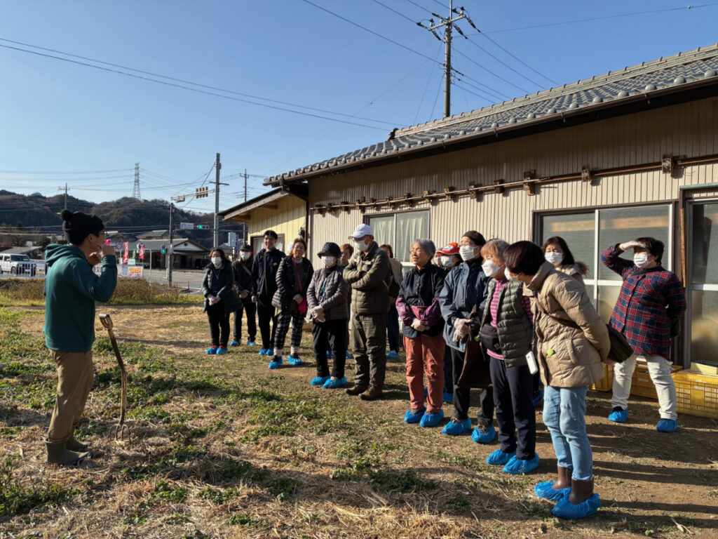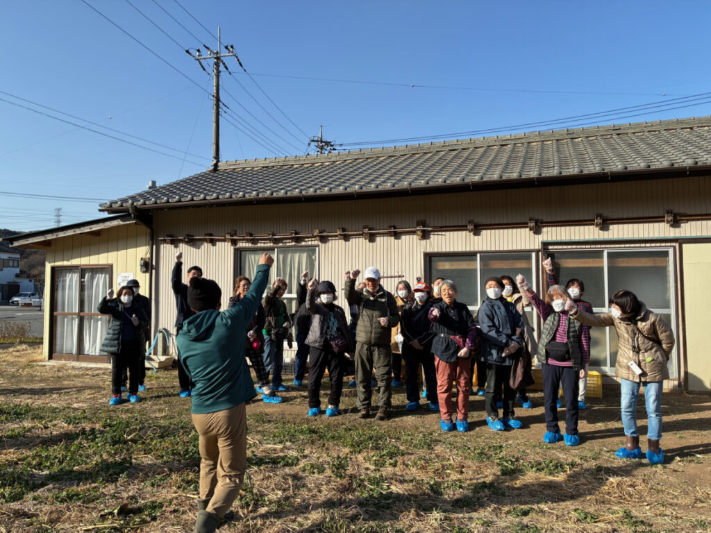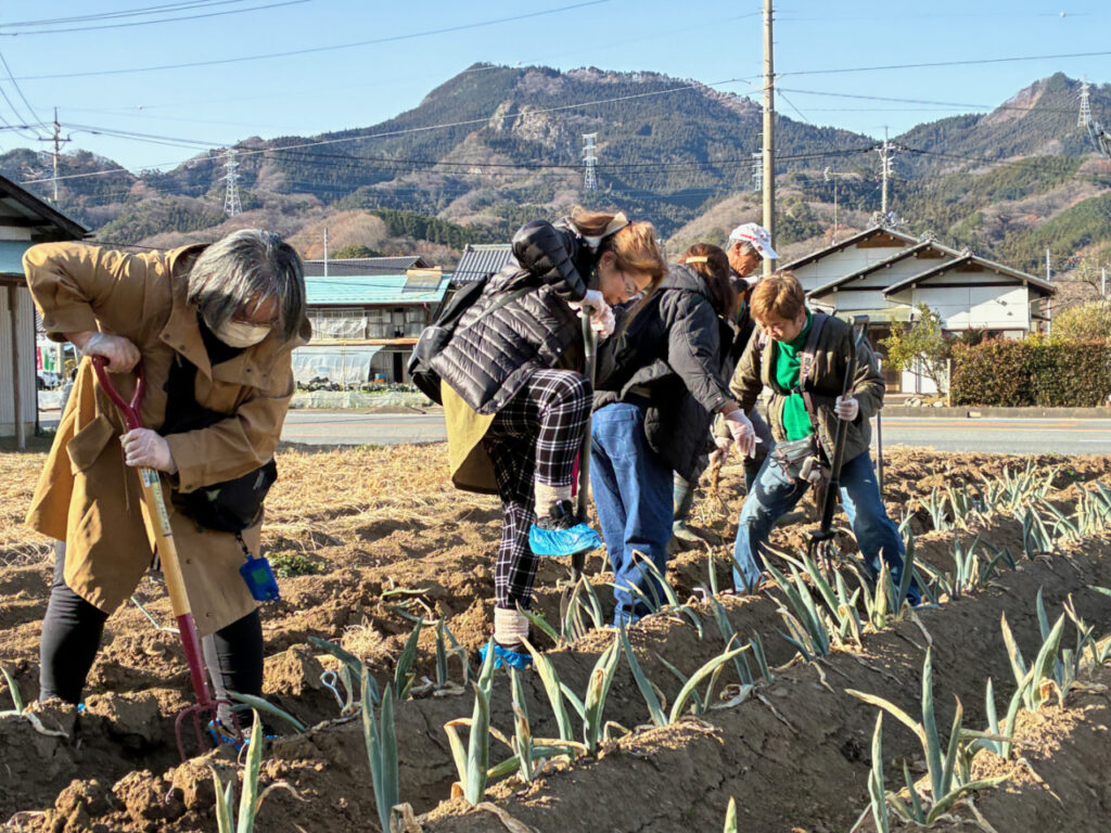 いよいよ収穫スタート!寒さを吹き飛ばすように、皆さんで気合を入れて「しもにた!ねぎー」と力強い掛け声!その勢いで、寒さも忘れて収穫作業に夢中になる、活気あふれる時間となりました。