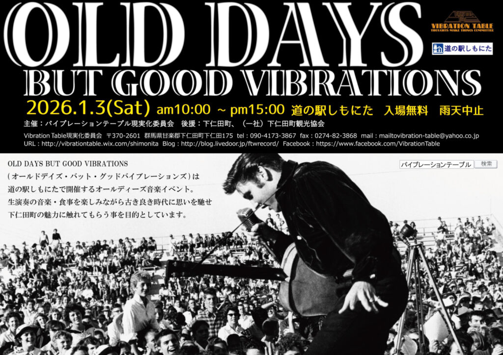 道の駅しもにたにてオールディーズ音楽イベント「OLD DAYS BUT GOOD VIBRATIONS(オールドデイズ・バット・グッドバイブレーションズ)」を開催します!